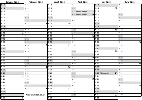 1233 calendar