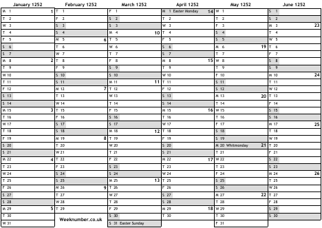 1252 calendar