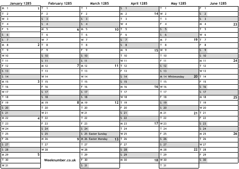 1285 calendar