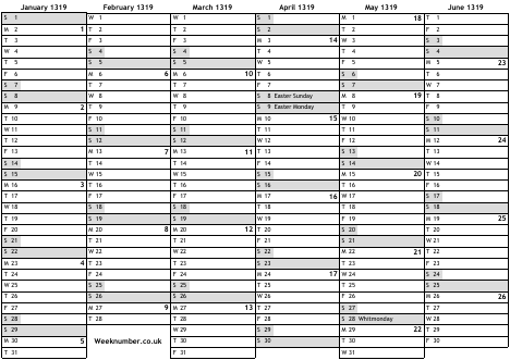 1319 calendar