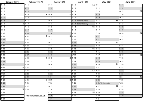 1371 calendar