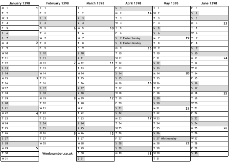 1398 calendar
