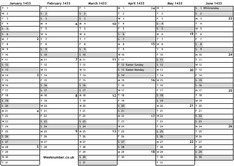 1433 calendar