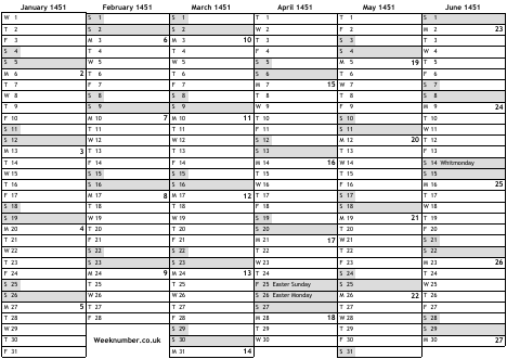 1451 calendar