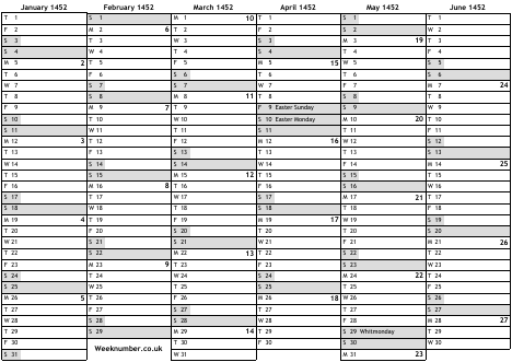 1452 calendar