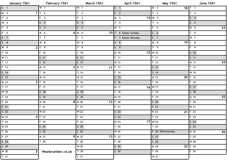 1561 calendar