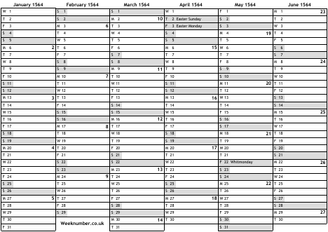 1564 calendar