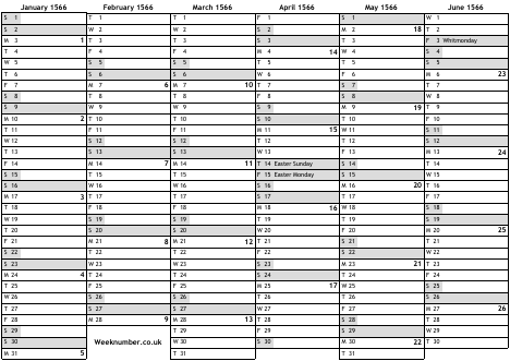 1566 calendar