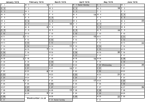 1616 calendar