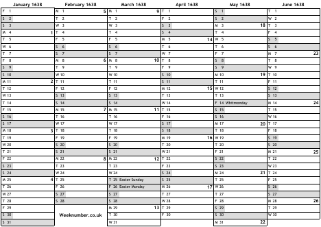 1638 calendar