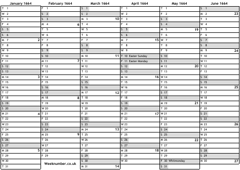 1664 calendar