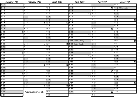 1707 calendar