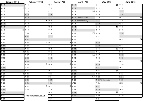1713 calendar