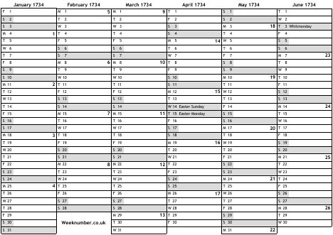 1734 calendar