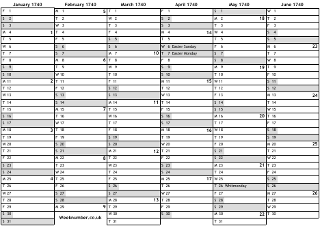 1740 calendar