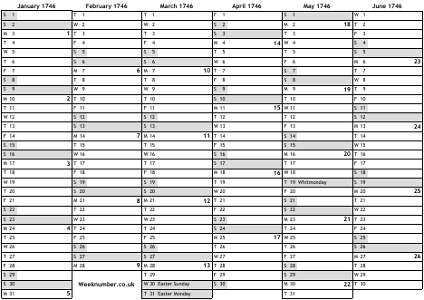 1746 calendar