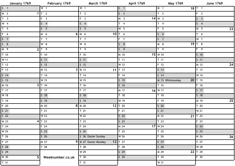 1769 calendar