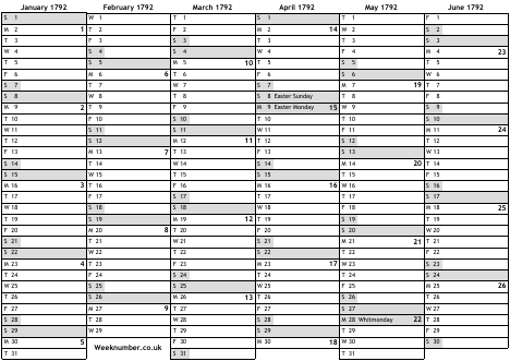 1792 calendar