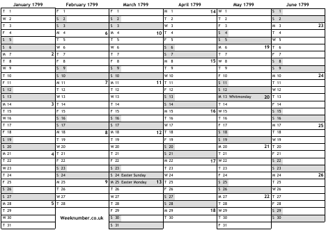 1799 calendar