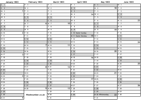1803 calendar
