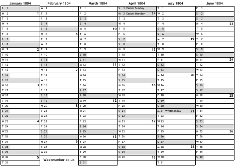 1804 calendar