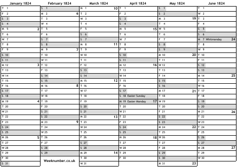 1824 calendar