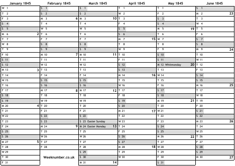 1845 calendar