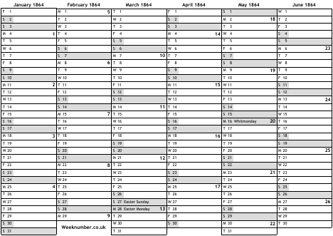 1864 calendar