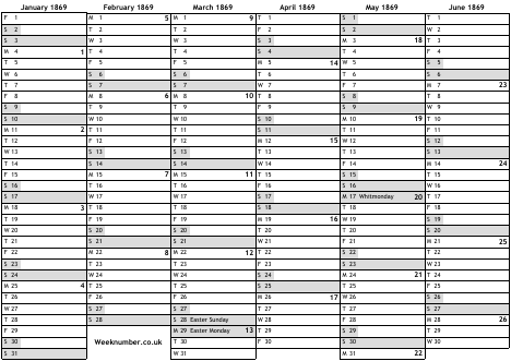 1869 calendar