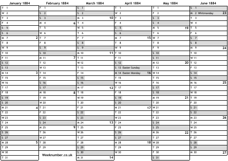 1884 calendar