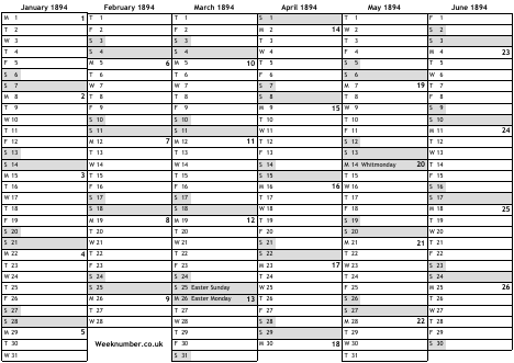 1894 calendar