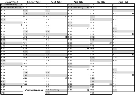 1263 calendar