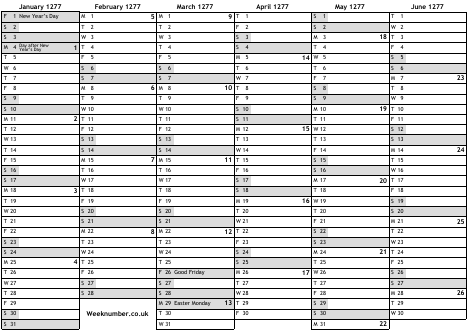 1277 calendar