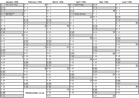 1306 calendar