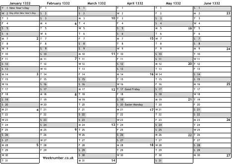 1332 calendar