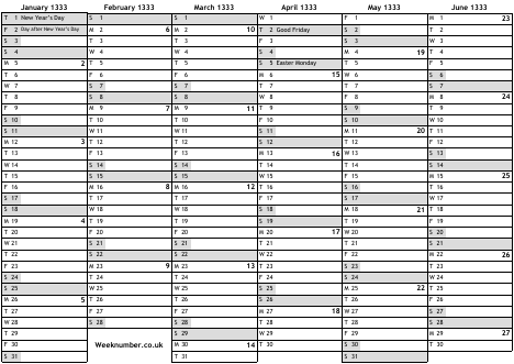 1333 calendar
