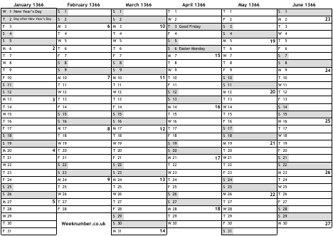 1366 calendar
