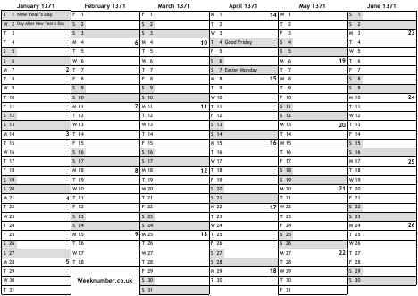 1371 calendar