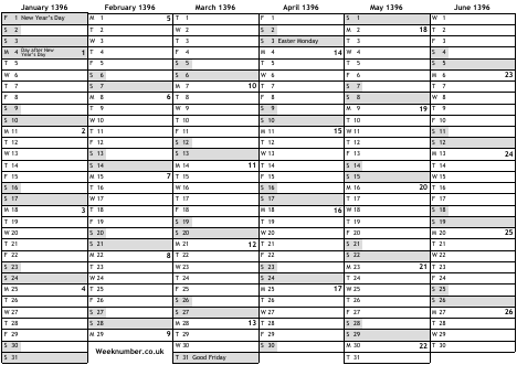1396 calendar