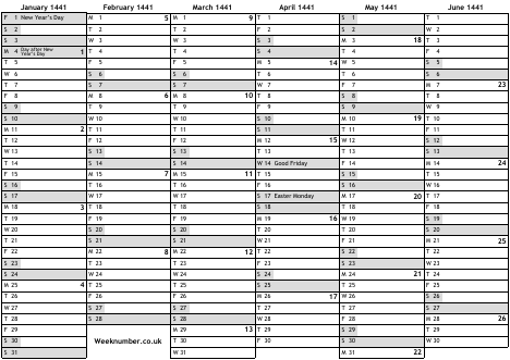 1441 calendar