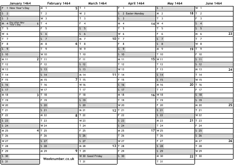 1464 calendar