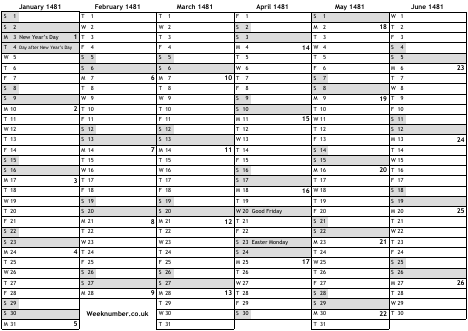 1481 calendar