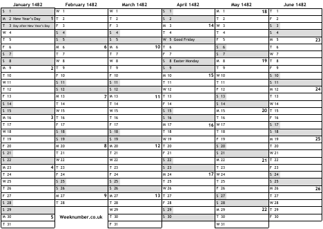 1482 calendar