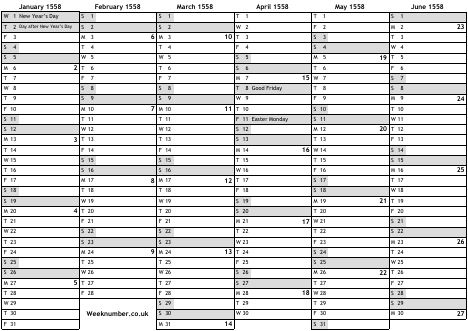 1558 calendar