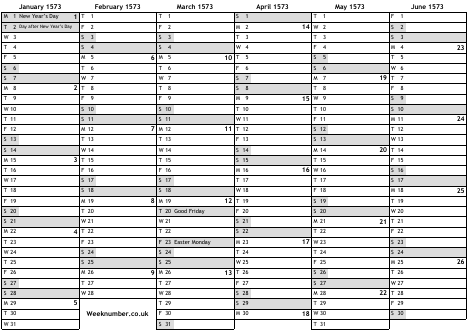 1573 calendar