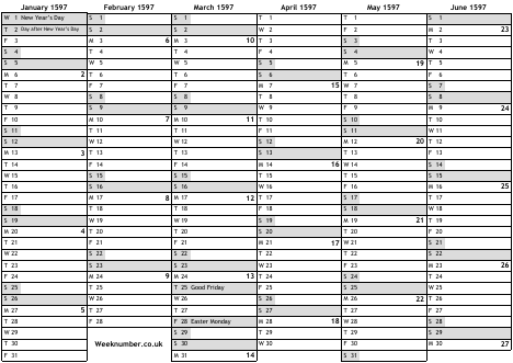 1597 calendar