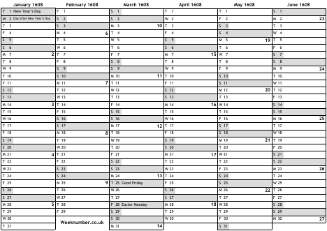 1608 calendar