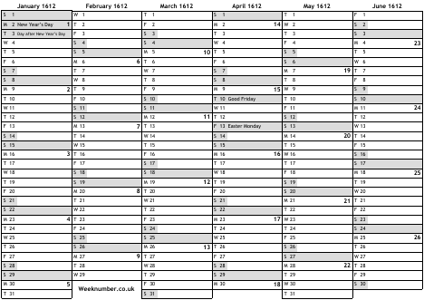 1612 calendar
