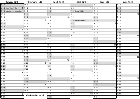 1640 calendar