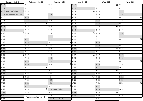 1684 calendar